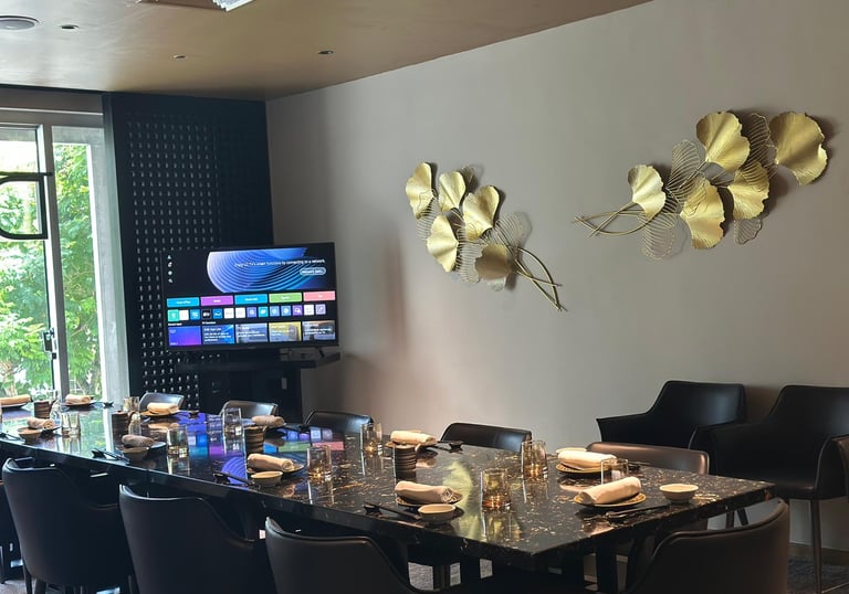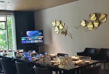 Tucked away yet wonderfully inviting, the Aki room offers a relaxed but elevated atmosphere for larger groups. Centered around a beautiful long table situated right by the expansive windows, it provides excellent natural light and a welcoming environment that feels highly exclusive without being overly formal.